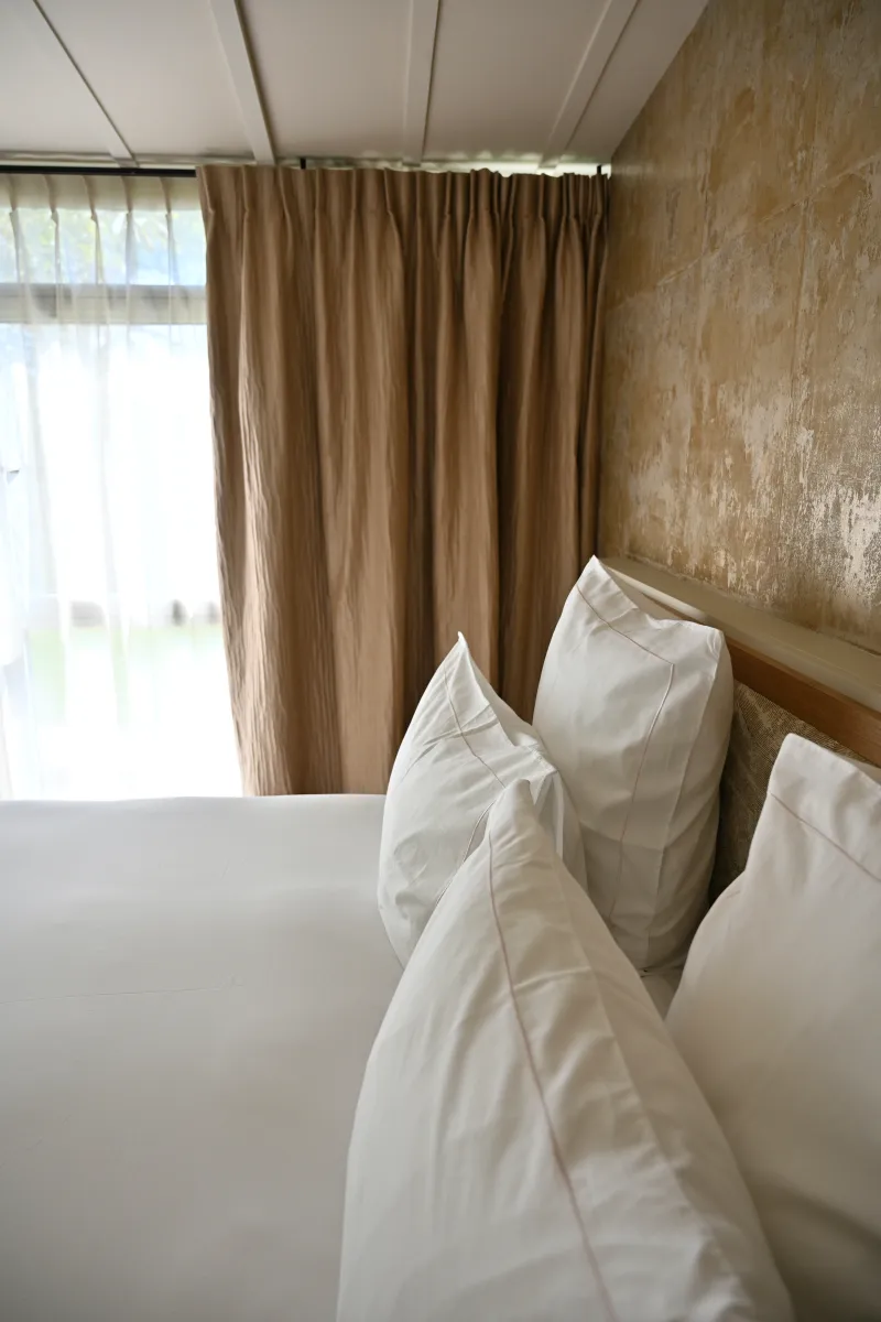 TÊTE DE LIT, RIDEAUX, VOILAGES, TAPIS, REVÊTEMENTS MURALSPour ce projet, chaque suite a été travaillée avec le Studio Fremont comme un univers à part entière, en privilégiant l’harmonie des matières et la précision des finitions :