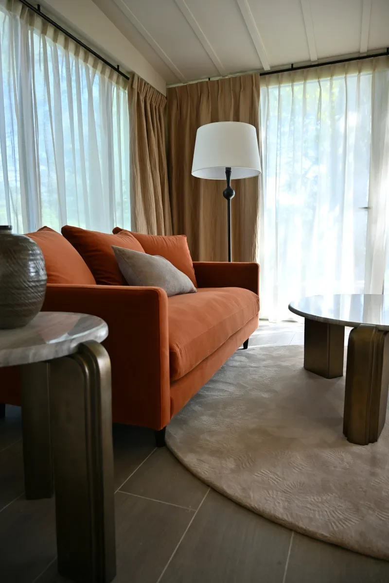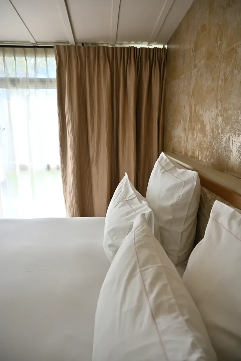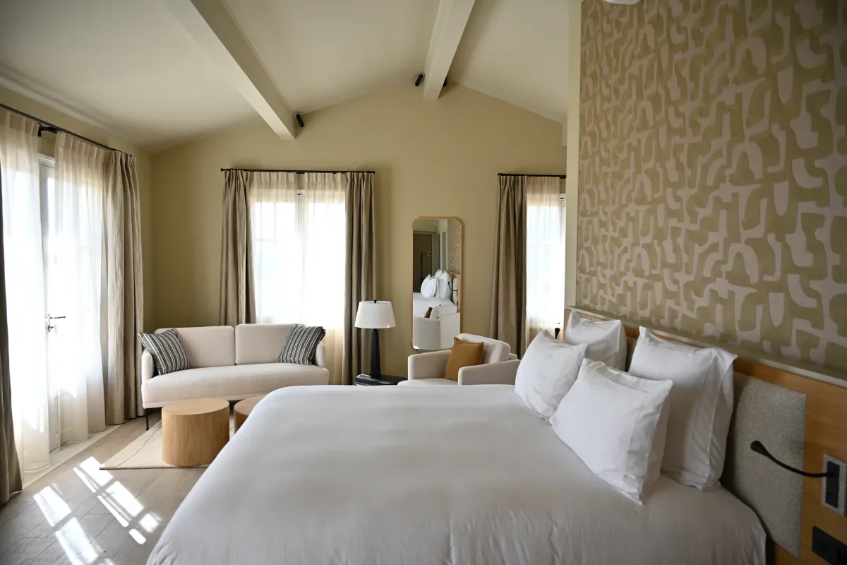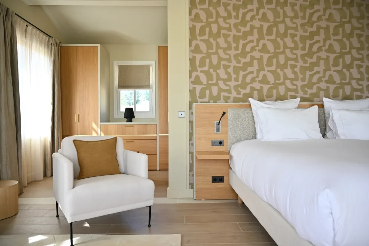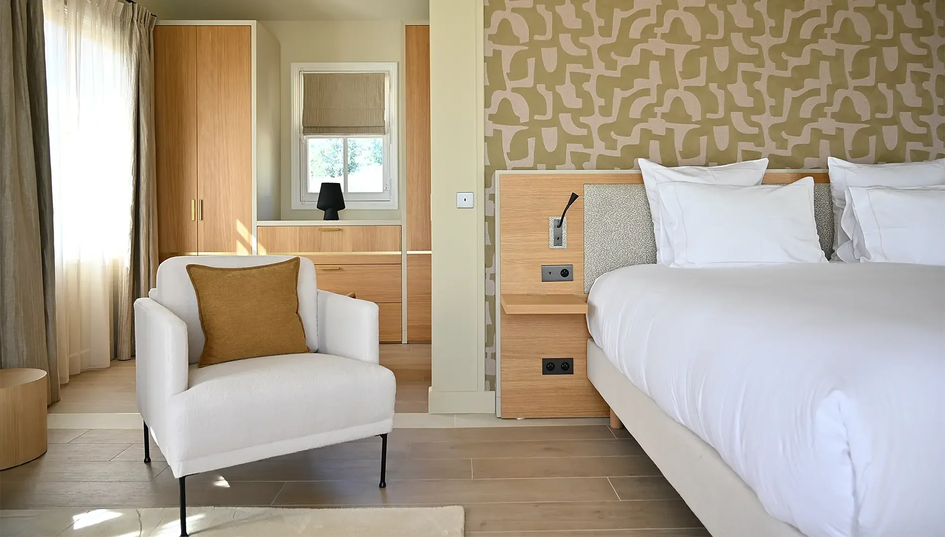 TÊTE DE LIT, RIDEAUX, VOILAGES, TAPIS, REVÊTEMENTS MURAUXPour ce projet, chaque suite a été travaillée avec le Studio Fremont comme un univers à part entière, en privilégiant l’harmonie des matières et la précision des finitions :