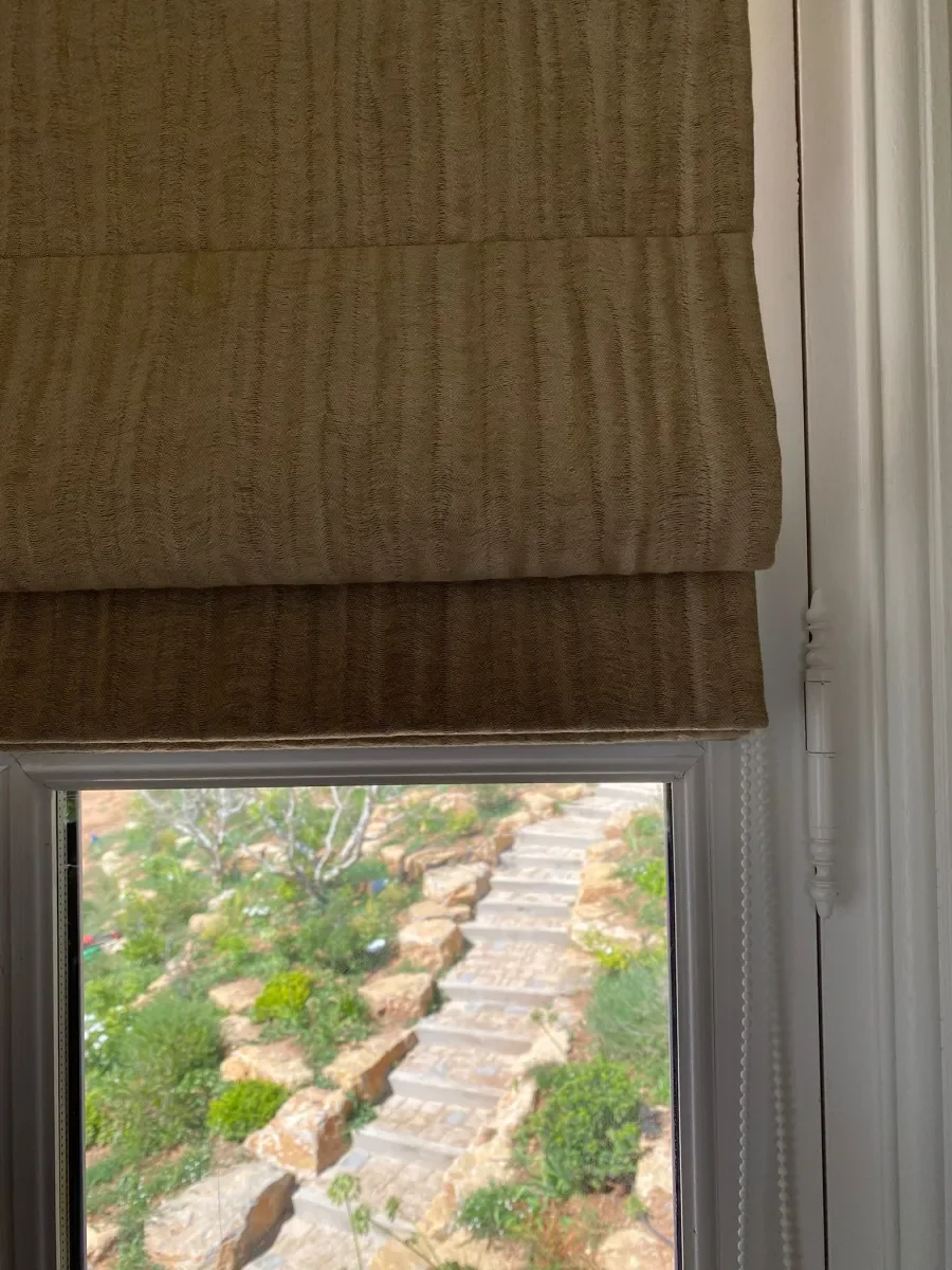 “Sonate” de Casamance tissage lin rebrodé d’un motif. - Habillage des fenêtres : stores bateaux dans les salles-de-bain, voilages légers et rideaux doublés occultants…